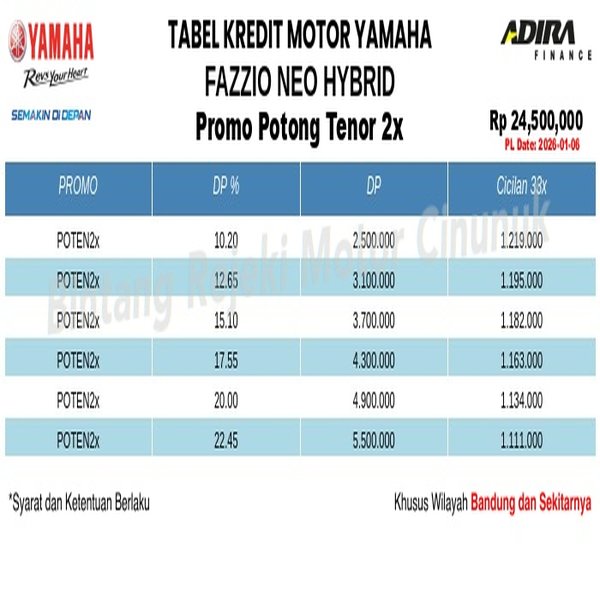 DP minimal untuk kredit Yamaha Fazzio Neo Hybrid 2026 di Bandung, Cimahi, dan sekitarnya: