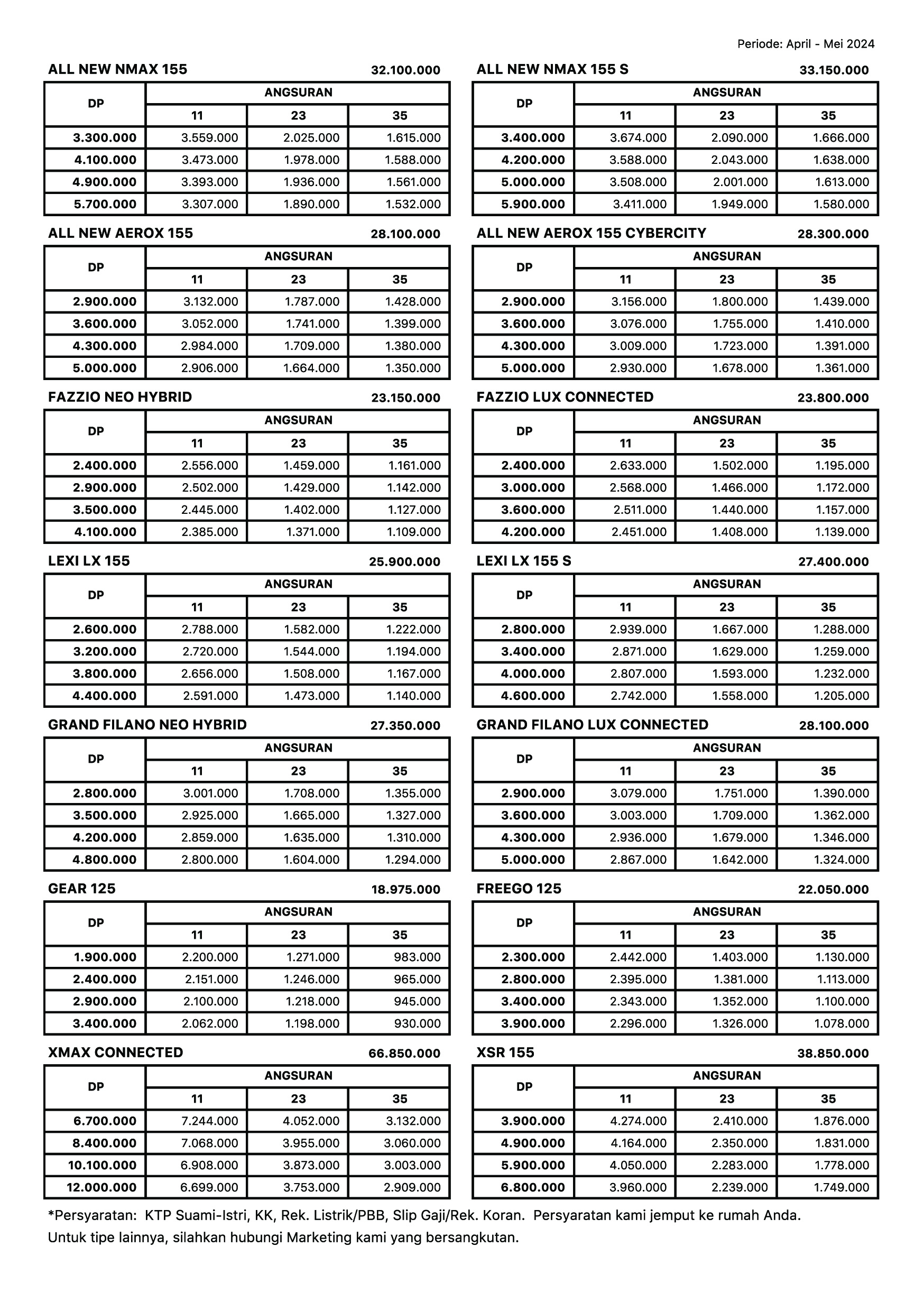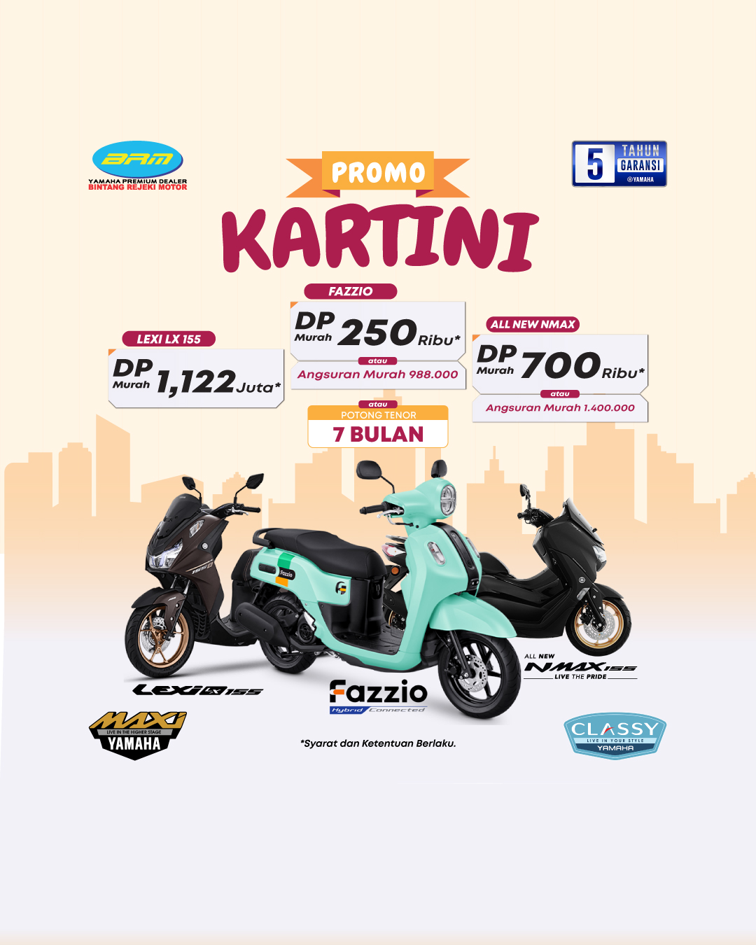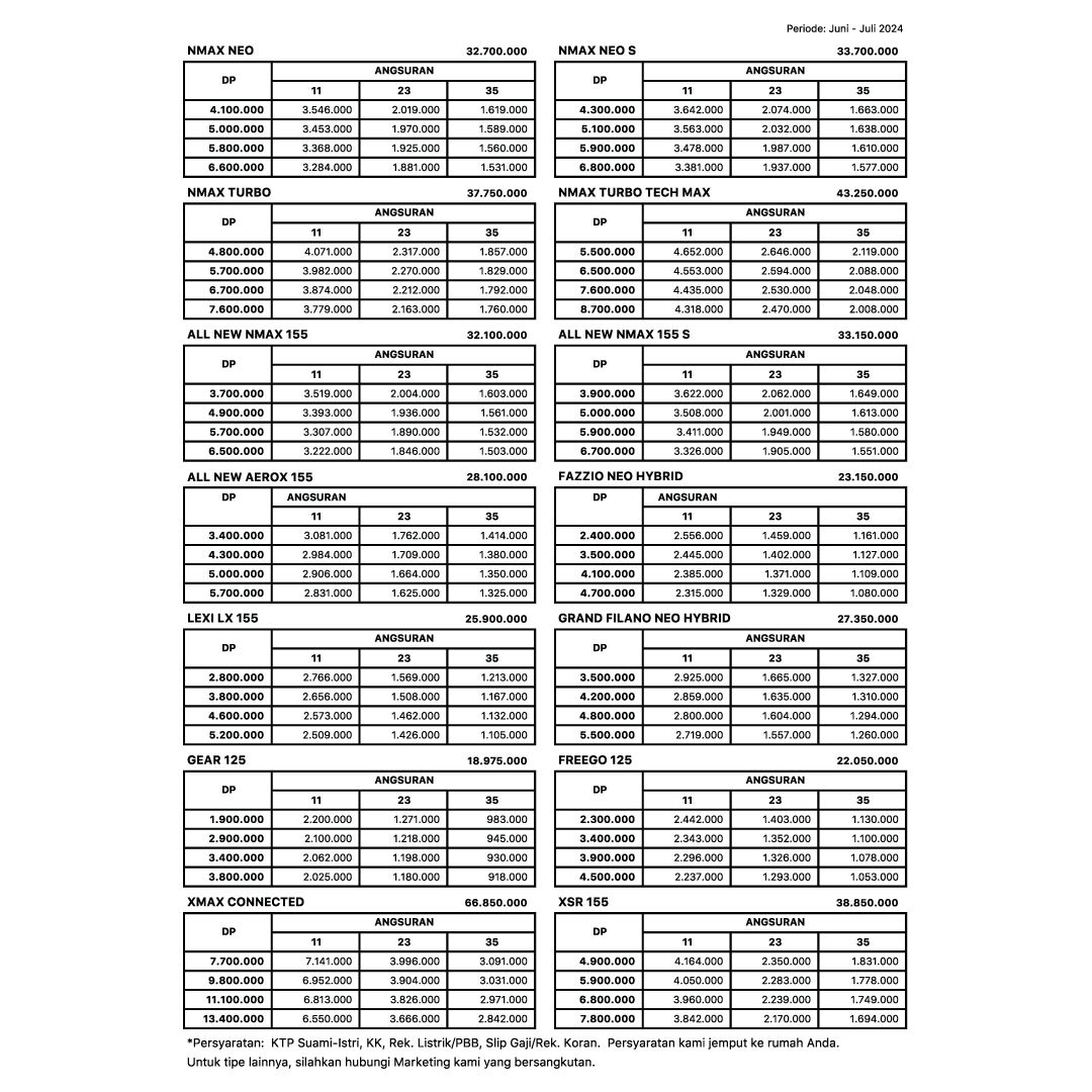 All New Aerox Cybercity, All New Aerox 155, Fazzio Neo Hybrid, Grand Filano, Lexi LX, Nmax Turbo Neo Version, Nmax Turbo YECVT, Promo kredit Bandung Cimahi